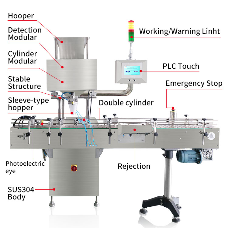 auto electronic pill counter machine ModelRQ-DSL-8DRQ-DSL-16RRQ-DSL-16Hsuit for Φ3~25mm tablets,pills,gummy,bean,buttons 000~5# hard and soft capsulesMax Capacity of auto drug pill counter50 bottle/min 80 bottles/min100 bottles/minAccuracy of auto drug pill counting counter and filler mach......