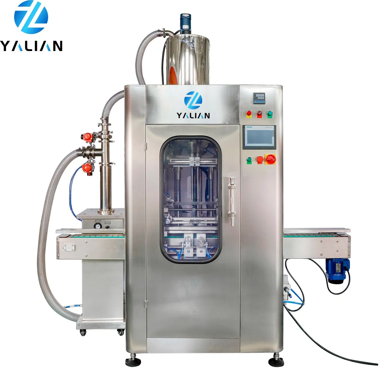 High quality SS304/ss316 stainless steel piston pump There are bottle caps, no bottles without caps: Both sides are equipped with timing belts with adjustable speed to clamp the bottle body to ensure that it is transported to a fixed position. It is equipped with cap-drop photoelectric sensor inspection to ensure that each cap falls accurately to the bottle mouth.