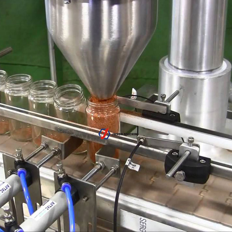 Full automatic chilli / milk / coffee / cocoa / tea / sugar / pepper / spice / Protein powder bottle filling packing wrapping machinemoldelJS-100PFspeed2100-3000bottle/hoursFeeder power2.24KW / 380Vtotal power6.49KW / 380Vsteelsus304Air pressure0.6~0.8mpaFilling can / bottle diameterφ40 ~ &a......