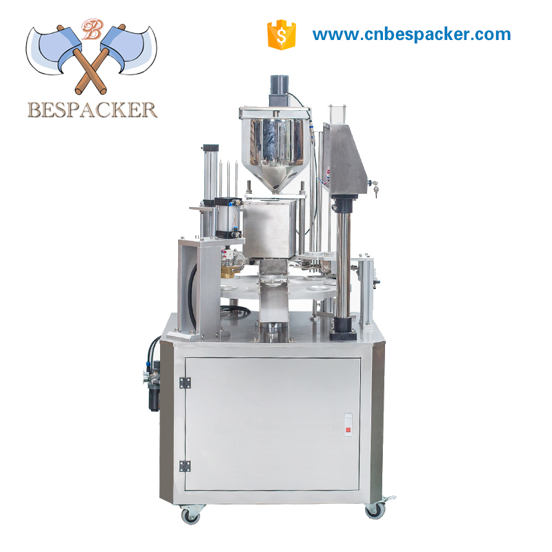 This machine is specially designed for aluminum capsule cups coffee products (or other kinds of powder products, such as tea powder, cocoa powder etc. ) to be filled and sealed. Can automatic do K cup, nesspro capsule cup, lavazza cups and so on.