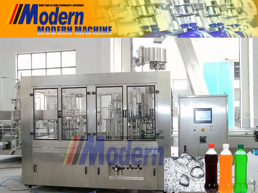 PET bottle coca cola filling lineModern XGFD series of Carbonated Drink Filling Machine for filling carbonated drink contains washing, filling and capping with complete automation, suitable for filling carbonated drink into polyester bottles. It can be used for all kinds of PET bottles. The bottle neck blocking makes the process of changing bottles easily by only adjusting the height of conveyor chain. The filling process adopts the micro-pressure technology, which makes filling process faster and more stable.