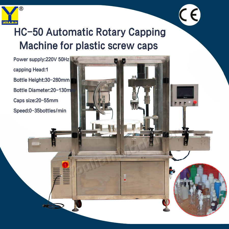 • Automatic Rotary Capping Machine with Protection Cover for Bottles (HC-50)Automatic Rotary Capping Machine with Protection Cover for Bottles (HC-50)