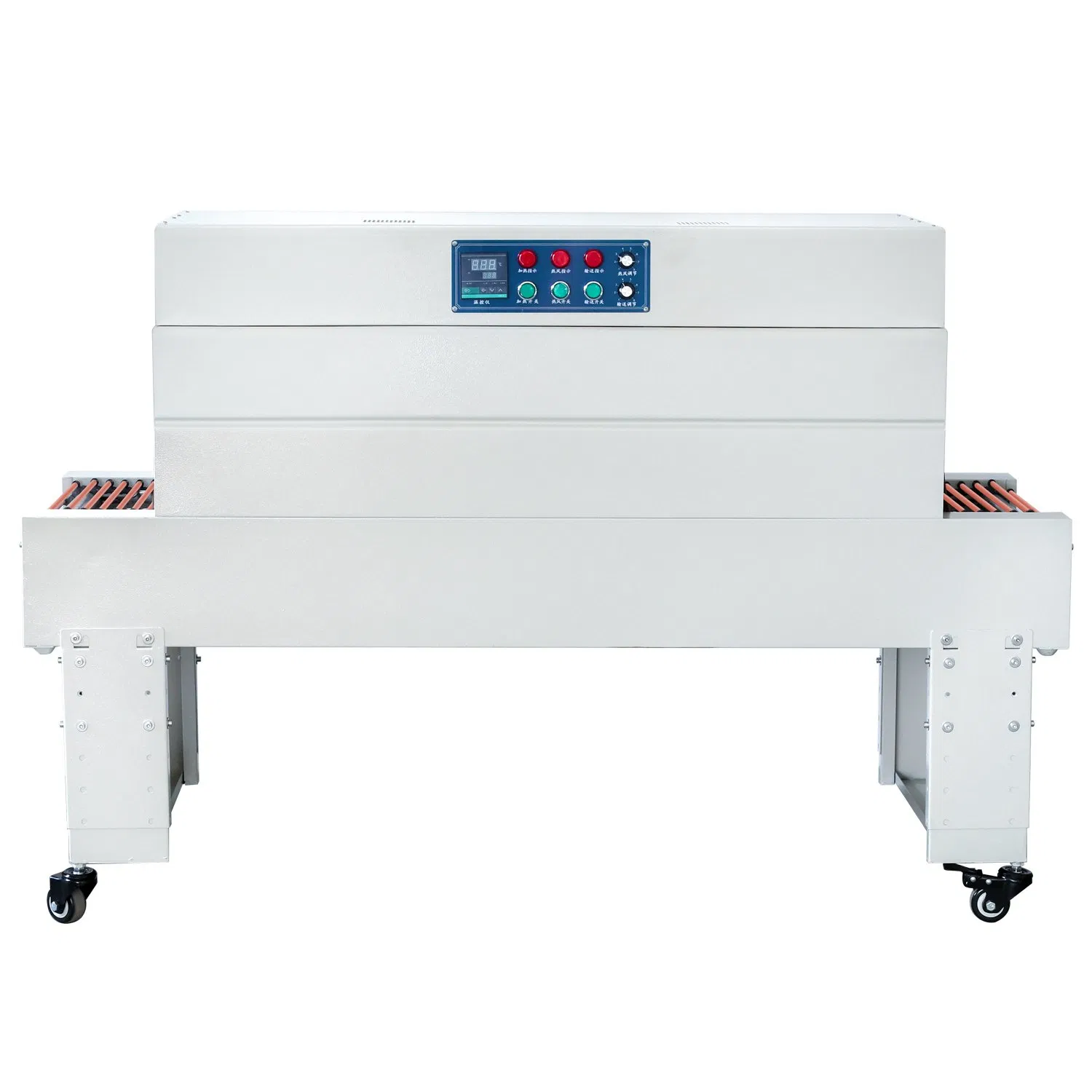 3. Manually  adjustable film-guide system and feeding conveyor platfrom make the machine suitable for different width and height items.when the packaging size changes,the adjustment is very simple by rotaing the hand wheel without changing molds and bag makers