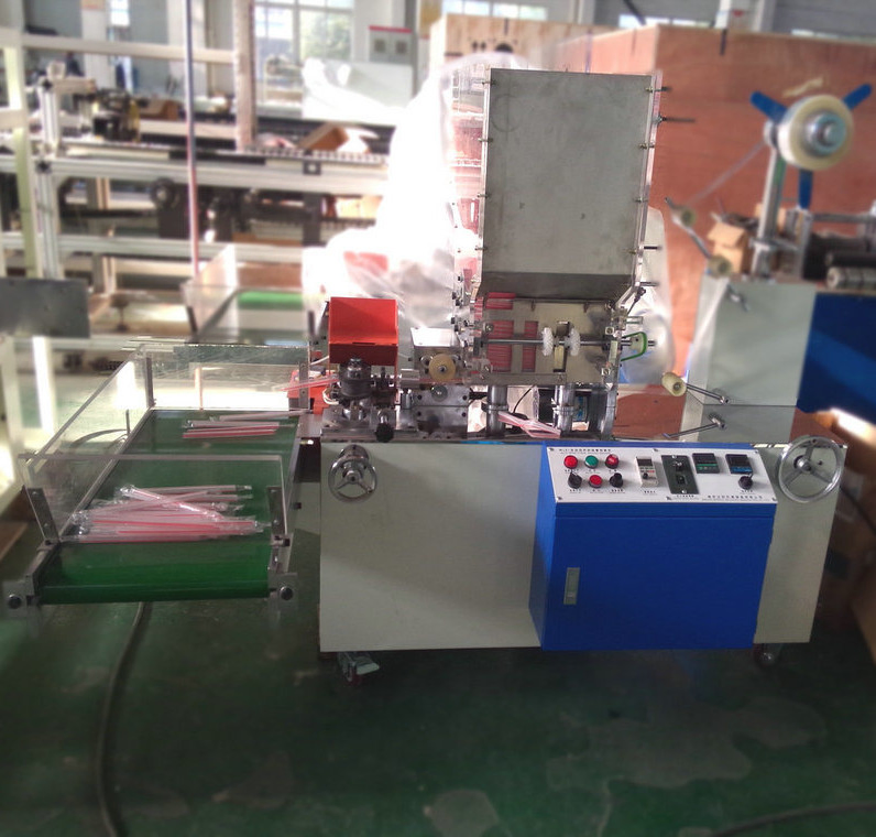 Drinking straw filling and sealing machine 1. Description:This is an automatic straw packing machine, suitable for packing the straight straw and flexible straw.